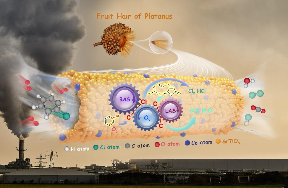 近日,pg娱乐官网化学工程系教师孙钰琨、博士生徐帅、博士研究生导师白波教授与西安交通大学何炽教授联合在环境领域权威期刊《Environmental Science & Technology》(《环境科学与技术》,影响因子:9.03)上以封面论文(图1)形式发表题为“Biotemplate Fabrication of Hollow Tubular CexSr1−xTiO3 with Regulable Surface Acidity and Oxygen Mobility for Efficient Destruction of Chlorobenzene: Intrinsic Synergy Effect and Reaction Mechanism”的研究论文,孙钰琨为论文第一作者,pg娱乐电子游戏官网入口为第一署名单位(文章链接:https://doi.org/10.1021/acs.est.2c00270)。该文提出一种以废治废的创新方法,深入剖析活性氧与多种酸位点的协同作用,是催化降解工业含氯可挥发性有机化合物的又一重大进展。