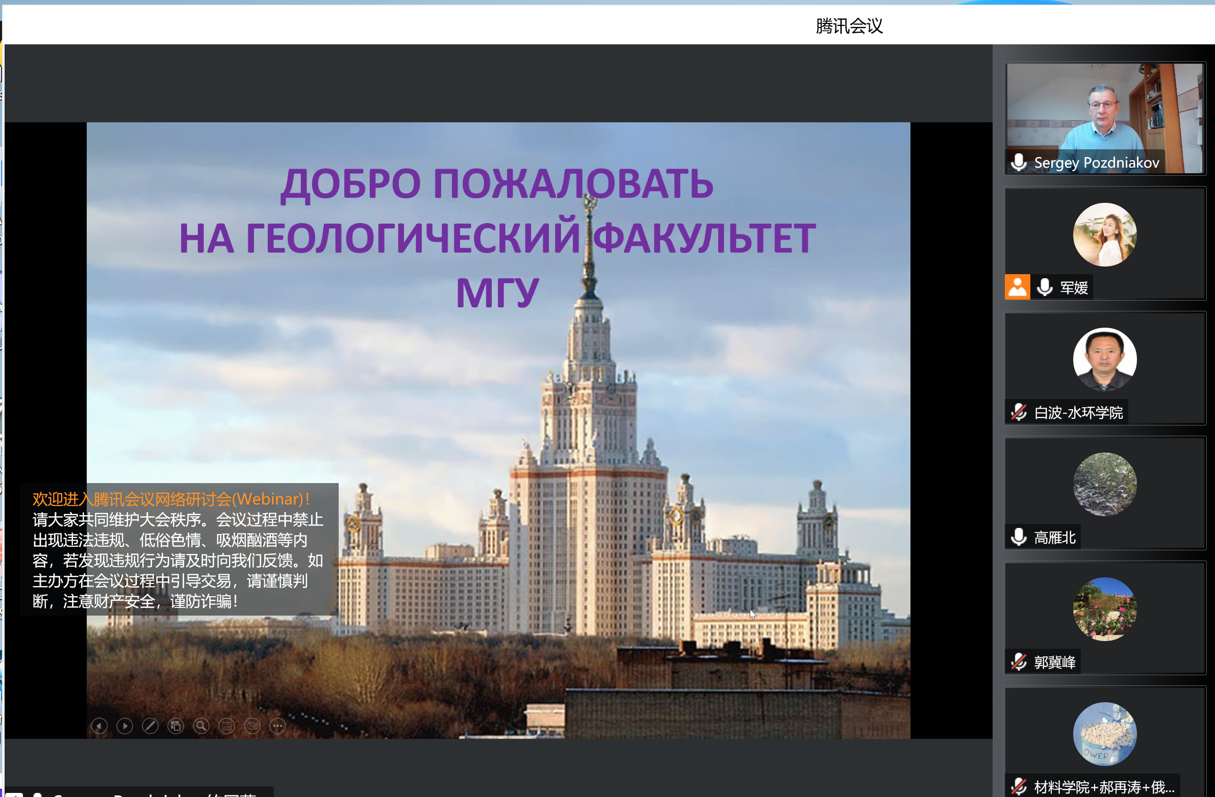 10月28日,俄罗斯莫斯科国立大学C.C.普茨尼亚科夫教授应pg娱乐电子游戏官网入口邀请,线上为pg娱乐官网师生开展以全球气候变化为主题的中俄学术讲座。讲座由pg娱乐官网pg娱乐电子游戏官网入口、水与发展研究院、国际合作处联合组织,由水与发展研究院李军媛主持并翻译。pg娱乐电子游戏官网入口、材料学院、外语学院、机械学院和建工学院等部门师生代表参加了本次学术活动。
