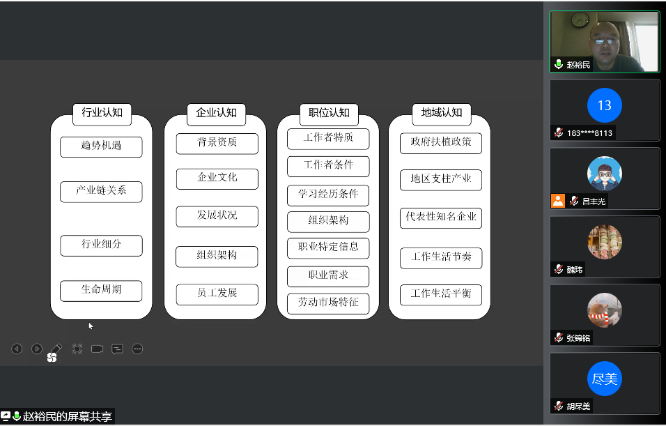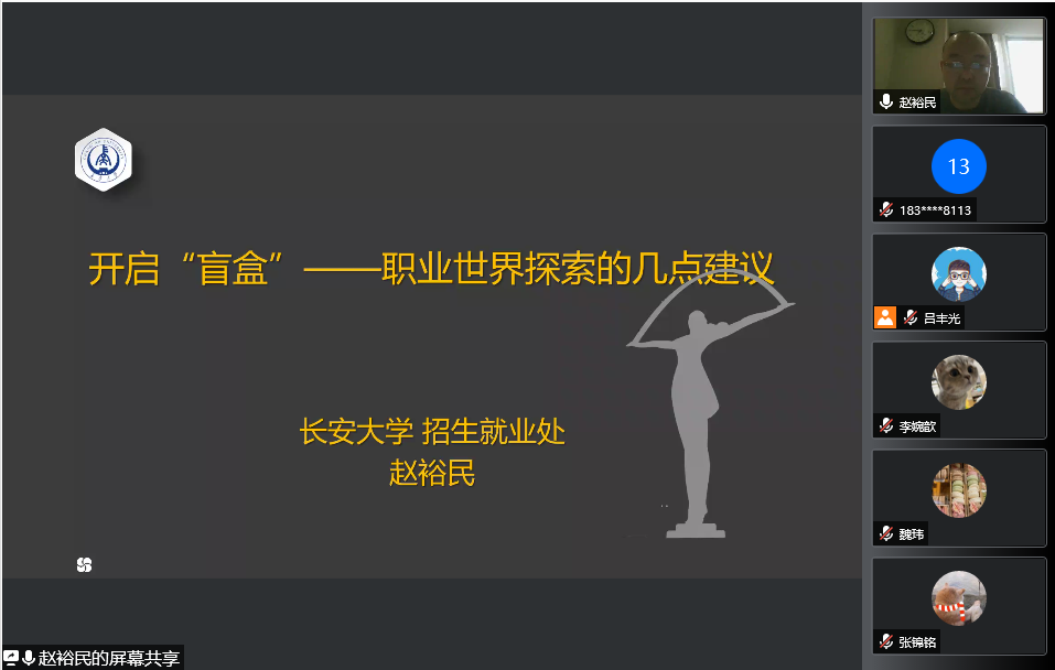 疫情当前,就业形势尤其严峻,pg娱乐电子游戏官网入口对研究生就业工作紧抓不懈。1月4日,学院邀请pg娱乐电子游戏官网入口招生就业指导教研室主任赵裕民为研究生做《开启“盲盒”——职业世界探索的几点建议》讲座,为研究生进行线上就业指导,全体毕业班研究生参加,学院党委副书记王妍主持。