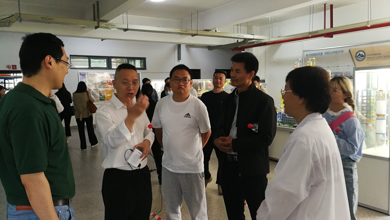2023年5月30日下午,西安工业大学国有资产管理处处长李群力一行来pg娱乐电子游戏官网入口化工实验中心调研交流实验室建设与管理工作。实验室建设与管理处副处长张雷和化工实验中心主任陈志红陪同调研。