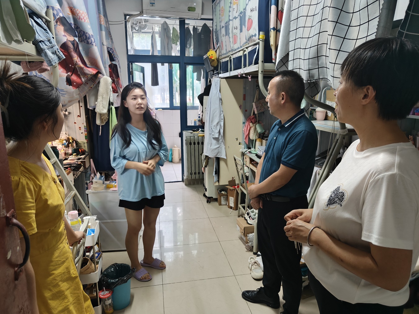 此外,院领导带队深入暑期留校学生宿舍,关心关爱暑期留校学生的生活状况,叮嘱同学们注意用电安全,注意防暑降温,有问题及时向老师反映。