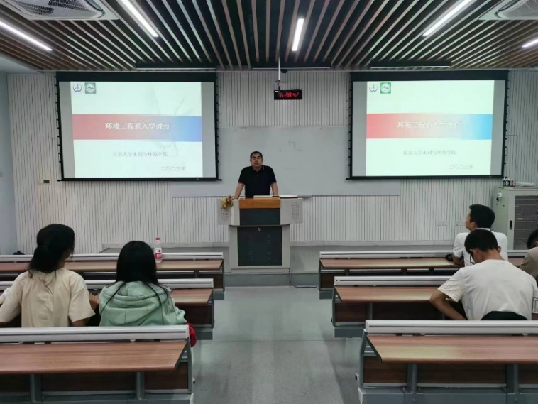 9月22日下午,环工系在渭水校区修远教学楼WX3102开展了2023级环境科学与工程类专业新生入学教育。本次入学教育由环工系主任郭冀峰主持,pg娱乐电子游戏官网入口副院长段磊、环工系教师代表以及环境科学与工程类专业所有本科新生参加。