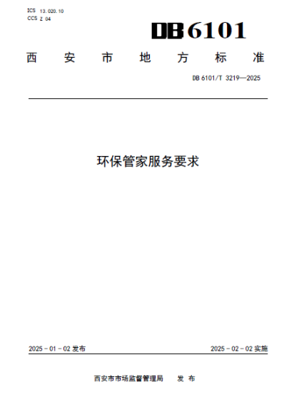 为贯彻落实《中华人民共和国环境保护法》等法律法规,以及《关于积极发挥环境保护作用促进供给侧结构性改革的指导意见》、《关于推进环境污染第三方治理的实施意见》等文件精神,培育及规范全市环保服务,促进环境服务业的发展,根据西安市市场监督管理局《关于征集2023年西安市地方标准制修订项目的通知》(西市监函发[2023] 6号)文件特编制《环保管家服务要求》。西安市市场监督管理局 2025年1月2日批准发布DB6101/T 3219-2025《环保管家服务要求》西安市地方标准,此标准于2025年2月2日开始实施;该标准由西安市环境保护科学研究院主编,pg娱乐官网白波、郭冀峰和叶林静三位老师参与了此次标准的编制。