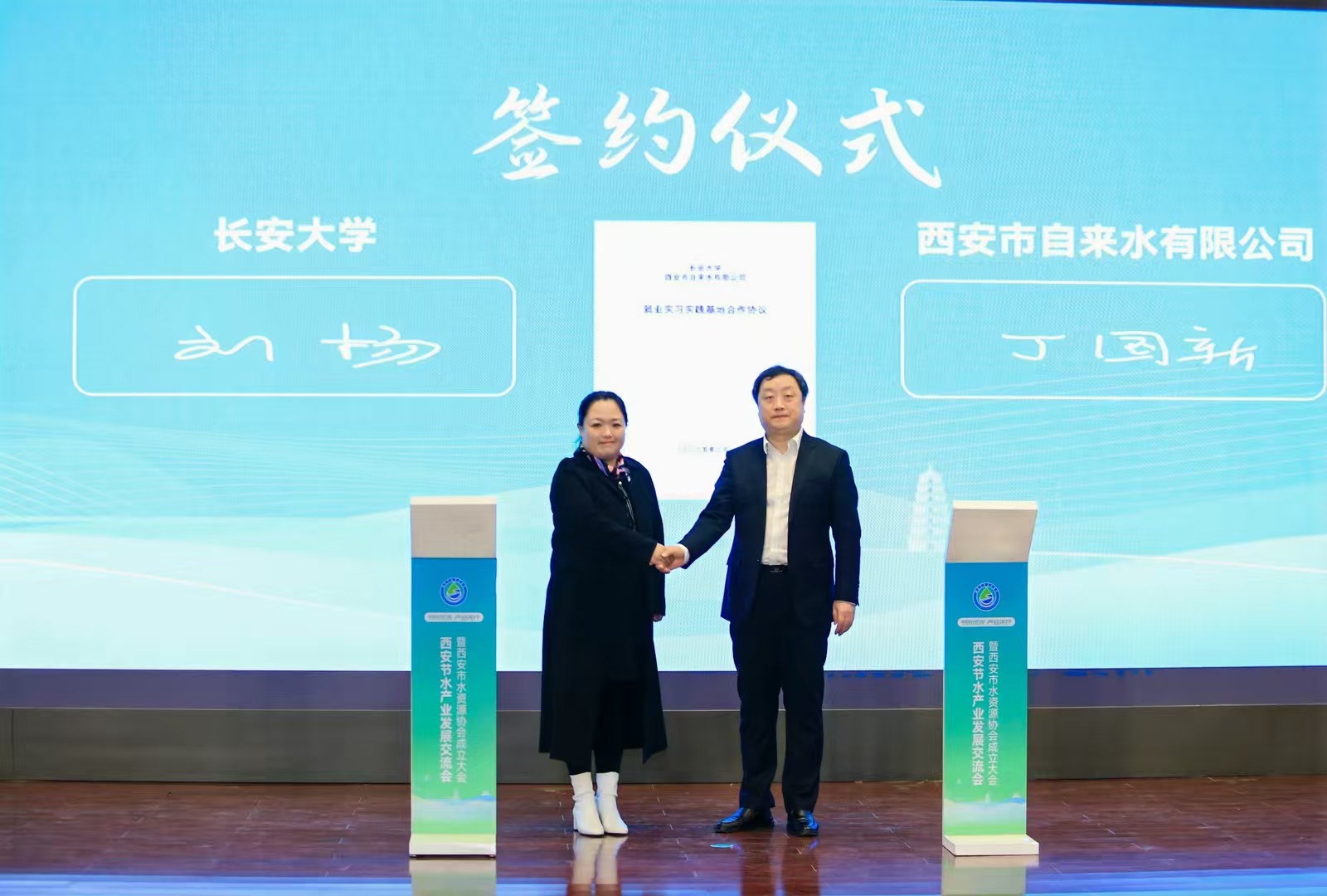 交流会上,水利部全国节约用水办公室节水产业处处长周哲宇、pg娱乐电子游戏官网入口副校长黎开谊分别致辞;3名行业专家围绕节水技术创新与产业融合发展发表了主旨演讲。成立大会上,水利部全国节水办、省水利厅、团省委、pg娱乐电子游戏官网入口领导为协会及志愿服务中心揭牌,pg娱乐电子游戏官网入口和西安水务集团自来水公司共同签署了就业实习实践基地合作协议。pg娱乐官网彭建兵院士受聘为协会荣誉会长,钱会教授被选举为西安市水资源协会第一届会长并作就职发言,张骞文、白波受聘为协会监事长和特聘专家,参会领导为pg娱乐电子游戏官网入口学生志愿服务队等进行了授旗。