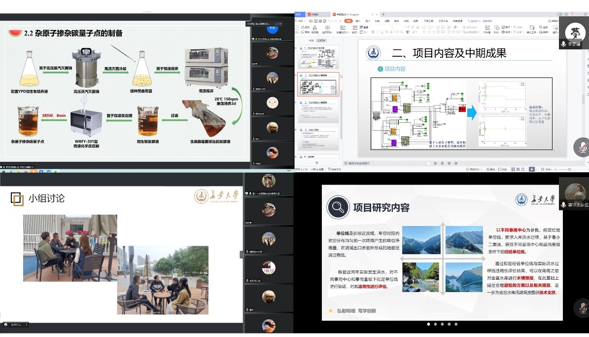 答辩专家组组长先对答辩现场纪律和要求作了说明。各项目组负责人依次用PPT简要汇报项目开展的工作、研究是否按计划完成、所获成果、特色和创新点、存在问题等内容,并对专家组提出的问题现场作答。专家组从立项依据、执行情况和研究成果等多方面对项目进行评价打分,并针对学生在项目执行过程中存在的问题给予了指导性意见。因疫情,部分需要进行实验或者野外调研的项目进度受到不同程度的影响,各项目组和指导教师会根据实际情况进行适当调整。