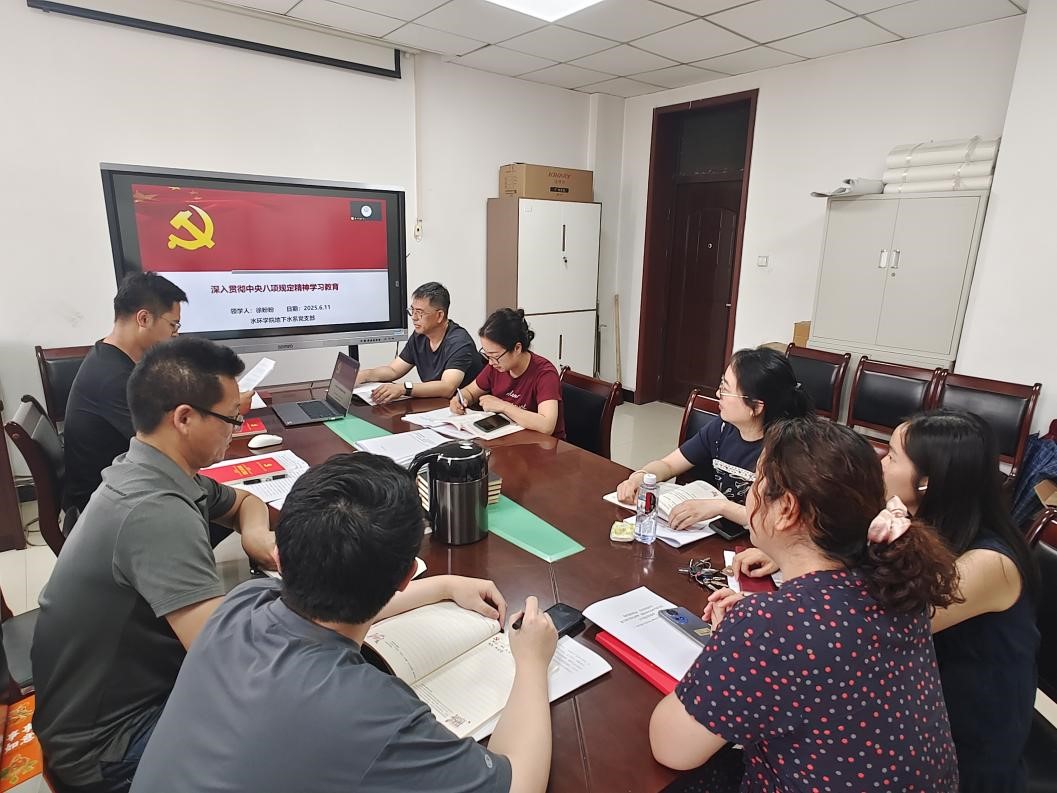 为持续巩固深化作风建设成果,切实增强教师党员廉洁从教、规范履职的思想自觉和行动自觉,地下水科学与工程党支部于2025年6月11日在系办召开深入贯彻中央八项规定精神学习教育会议,全体党员参会。