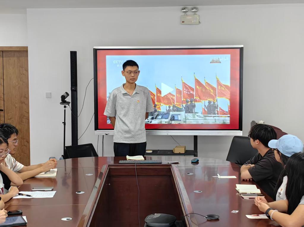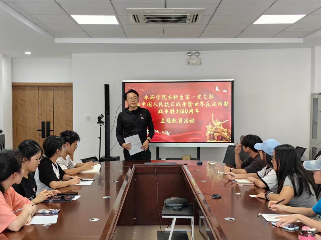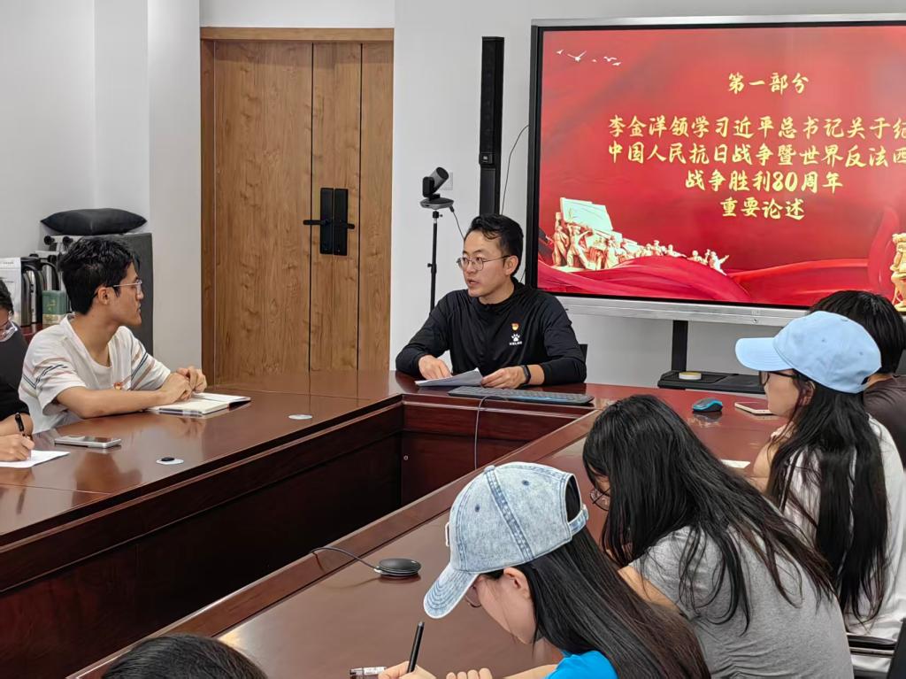为深入学习贯彻习近平总书记关于中国人民抗日战争与世界反法西斯战争的重要论述,深刻感悟伟大抗战精神的时代价值,激发青年党员的爱国热情和奋斗精神,2025年9月9日,pg娱乐电子游戏官网入口本科生第一党支部于朝晖园一站式社区研讨室组织开展了纪念中国人民抗日战争暨世界反法西斯战争胜利主题教育活动。本次会议由本科生第一党支部书记李金洋同志主持,支部全体党员参会。