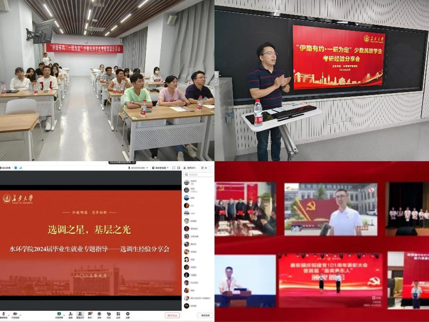 发挥榜样力量,举办“开学第一场经验分享会”。学院吹响2024届毕业生就业“集结号”,采取就业精准摸排和分类指导。针对选调生和考公的同学,举行“选调之星、基层之光”主题经验分享会,邀请学院往届优秀选调生,为同学们分享选调经验,加深同学们对于相关政策与备考方法的了解。针对少数民族同学,聚焦“伊路有约”学生工作品牌,举行“伊路有约、一研为定” 少数民族同学考研经验分享会暨少数民族骨干计划政策解读会,邀请学院优秀少数民族博士生进行经验分享,帮助少数民族同学进一步明确学习目标,促进顺利升学,更好就业。